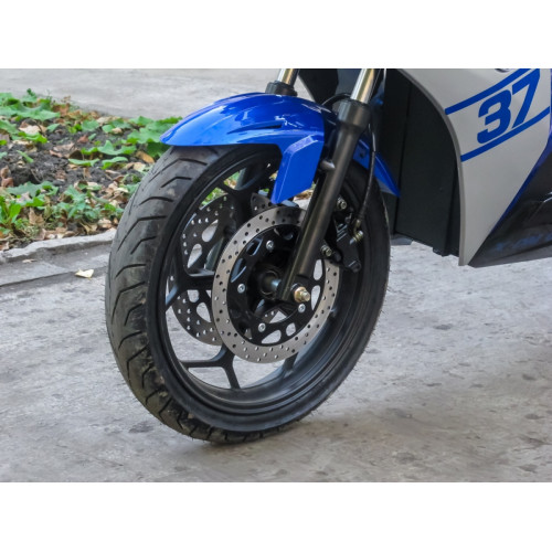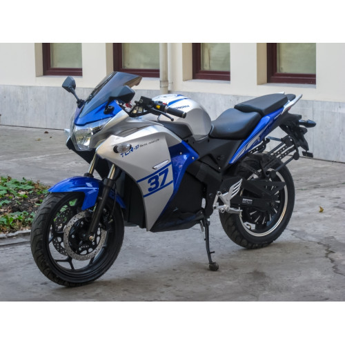Мощность мотора 3000 Ват 72 вольт Литиево полимерные аккумуляторные батареи Li-Po 72 вольта 20 ампер.ч Максимальная скорость (ограничена контроллером) 70 км.ч Дальность поездки до 90-120 км Время полной зарядки аккумуляторов 4-6 часов. Сигнализация есть. Светодиодные фары. Боковые кофры.